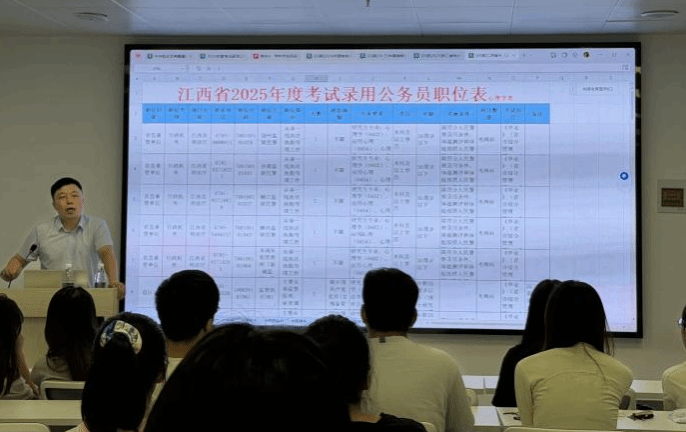 卢华坚老师结合十余年公考指导经验,围绕历年公务员招录岗位情况、报录比与录取分数等关键信息,为在场同学进行了系统梳理与针对性分析。同时,卢华坚老师客观解析了公务员职业特点,引导学生理性看待考公与就业,做到“两条腿走路”。讲座现场气氛热烈,卢老师还为有明确考公意向的毕业生提供了一对一的选岗与备考指导。