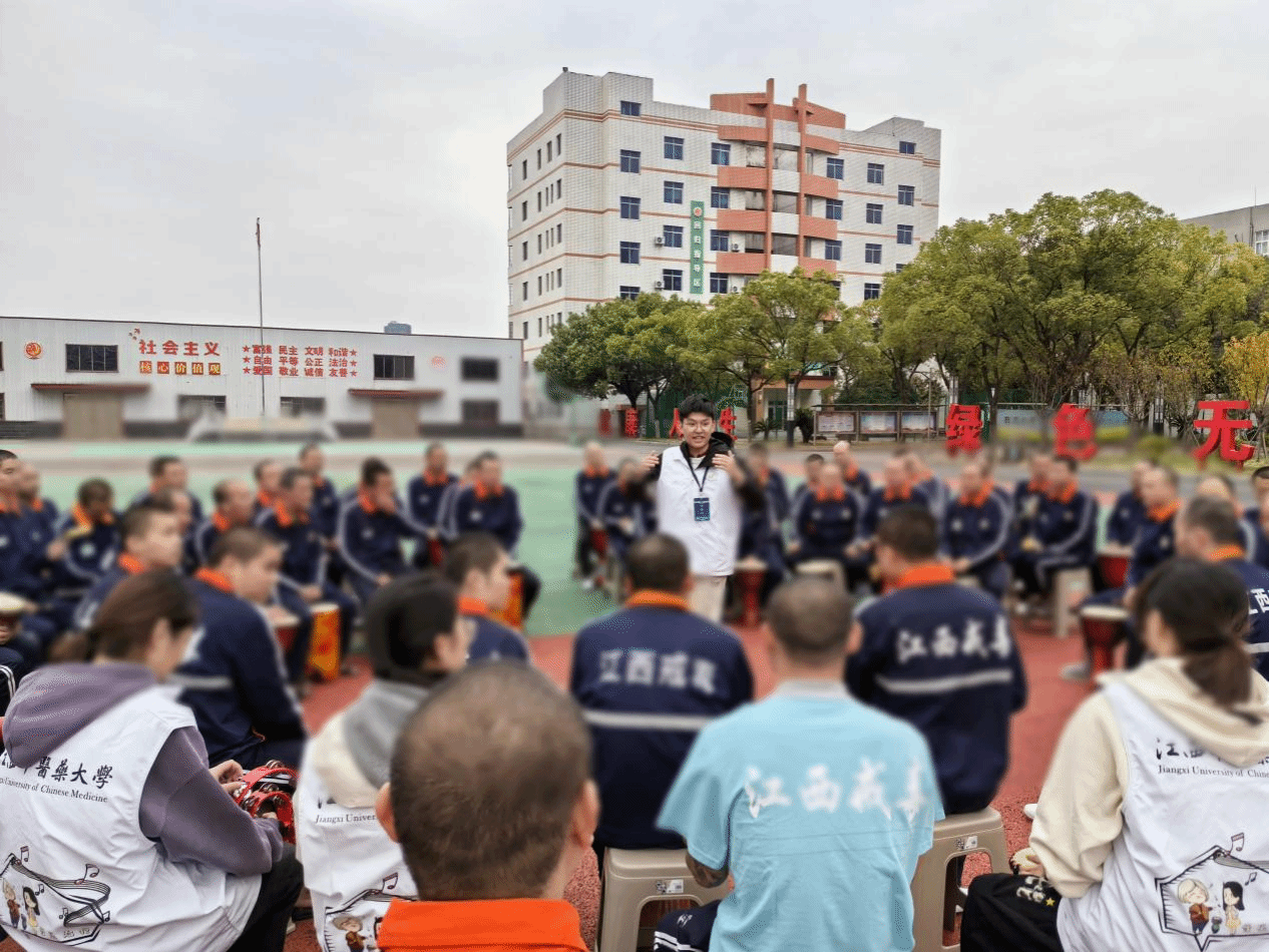 2025年10月26日,我院“乐心工作室”联合“心灵乐梦团”志愿服务队,携手江西省强制隔离戒毒所,成功举办“鼓歌疗愈,祛浊扬清”主题音乐治疗活动。此次活动以音乐为媒介,通过沙蛋互动、鼓圈合奏、音乐绘画等多元形式,为戒毒学员带来一场温暖而富有疗愈力量的心灵之旅,积极探索戒毒康复的新路径。