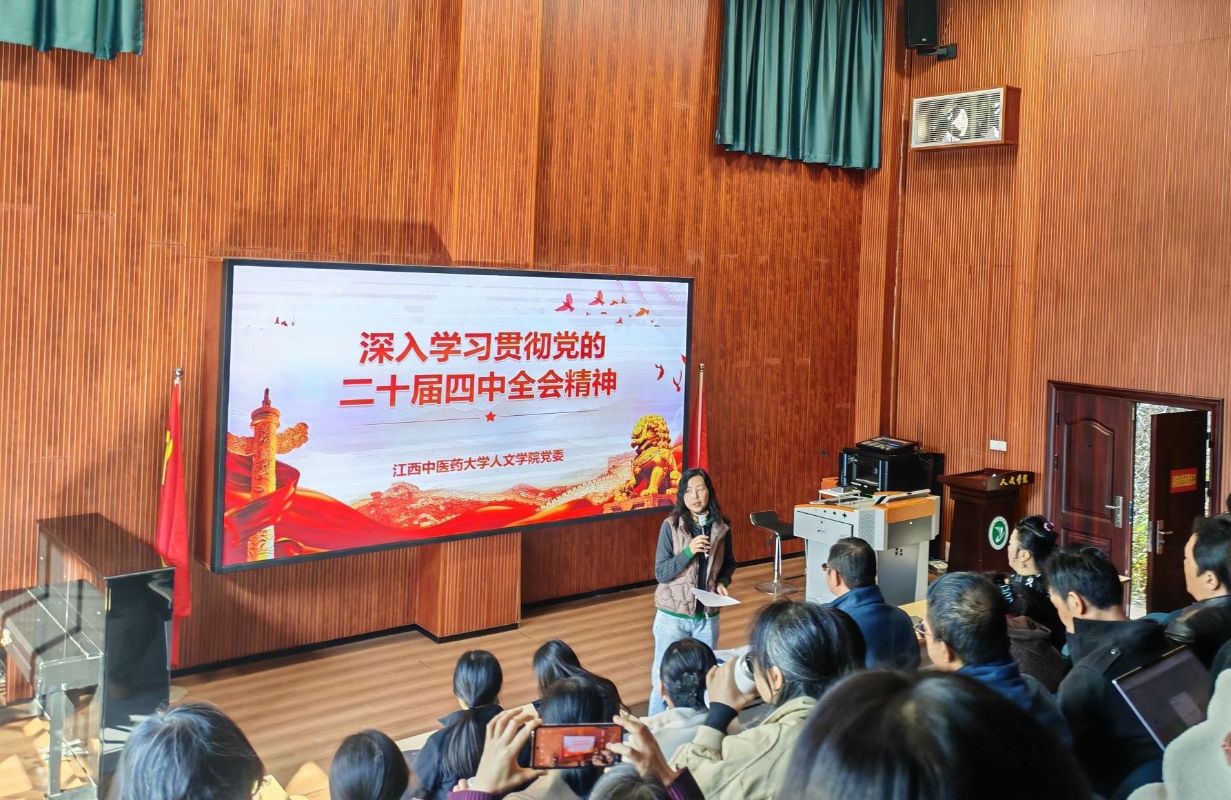 11月21日下午,学院党的二十届四中全会精神专题宣讲会在北校区共享会议室顺利举行。学院全体教职工参加会议,学院院长余亚微主持会议并作宣讲。