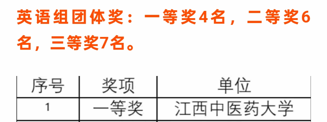 此次大赛共有来自135个国内外院校和自由译者参加,参赛代表不限于中医药大学及相关领域,还有综合性或外语等类别大学和境外院校,收到有效参赛译文1318篇。最终,我校荣获英语组团体奖一等奖,我院2023级英语班的黄小梅、郭文洁、袁思彤三位同学均荣获英语组个人三等奖,郑鸿翔老师荣获英语组优秀指导老师。