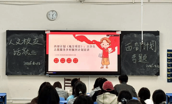讲座中,兰苗校友系统解读了西部计划招募条件、岗位设置、政策保障等核心内容,拆解了报考流程、服务期限、补贴待遇等关键问题,帮助同学们厘清政策红利与发展机遇。随后,她结合自身工作经历,生动分享基层工作日常、办公环境、食堂伙食与福利待遇,以真实细节打消同学们对基层就业的顾虑,充分调动了大家投身西部、服务基层的积极性。